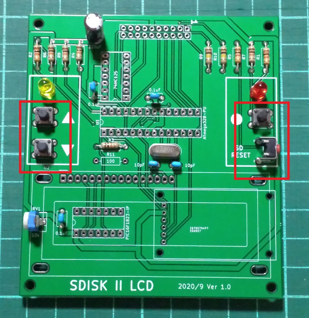 1.下の写真のようにタクトスイッチをはんだ付けします。