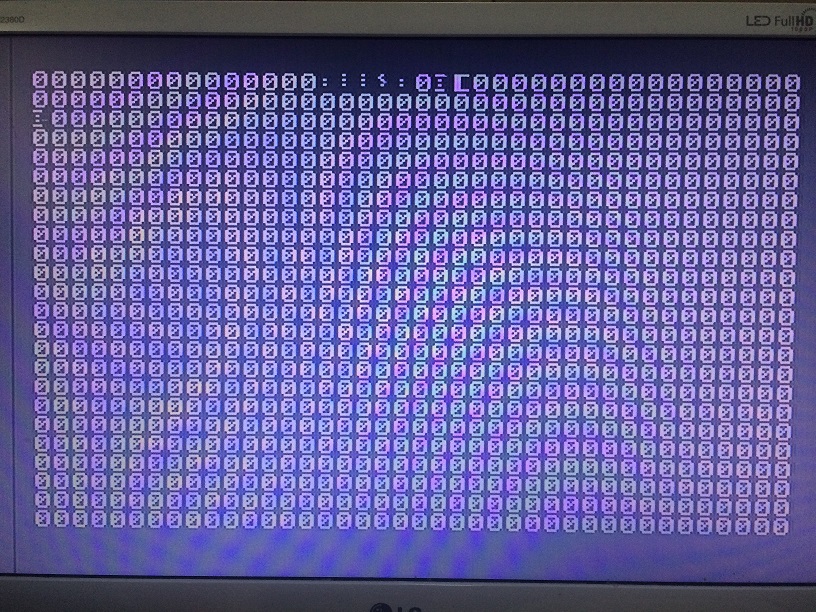 ビープ音はする。キーボードに反応する。画面が以下の状態。