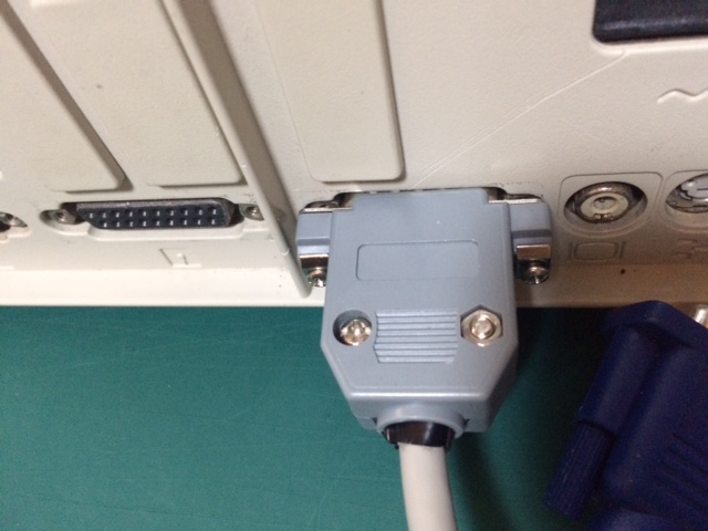 変換ケーブルをApple IIgsに装着すると、D-SUB15のカバーが邪魔をして、奥まで