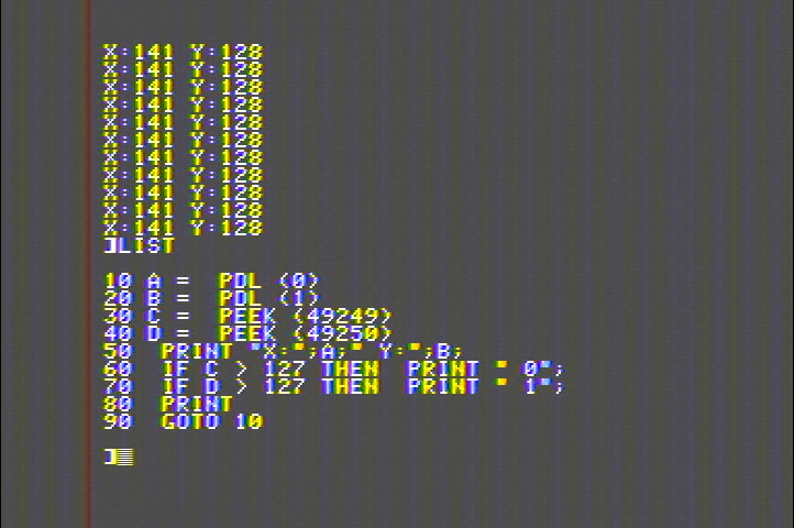 またX,Y値はAppleII本体やケーブルの長さに影響を受けます。