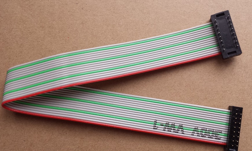 フラットケーブルと16ピンソケット(2.54mm幅)を